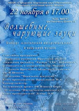 🌠Друзья! Скоро зима и по традиции в нашем Культурно-досуговом центре "Марат" состоится классический концерт!
